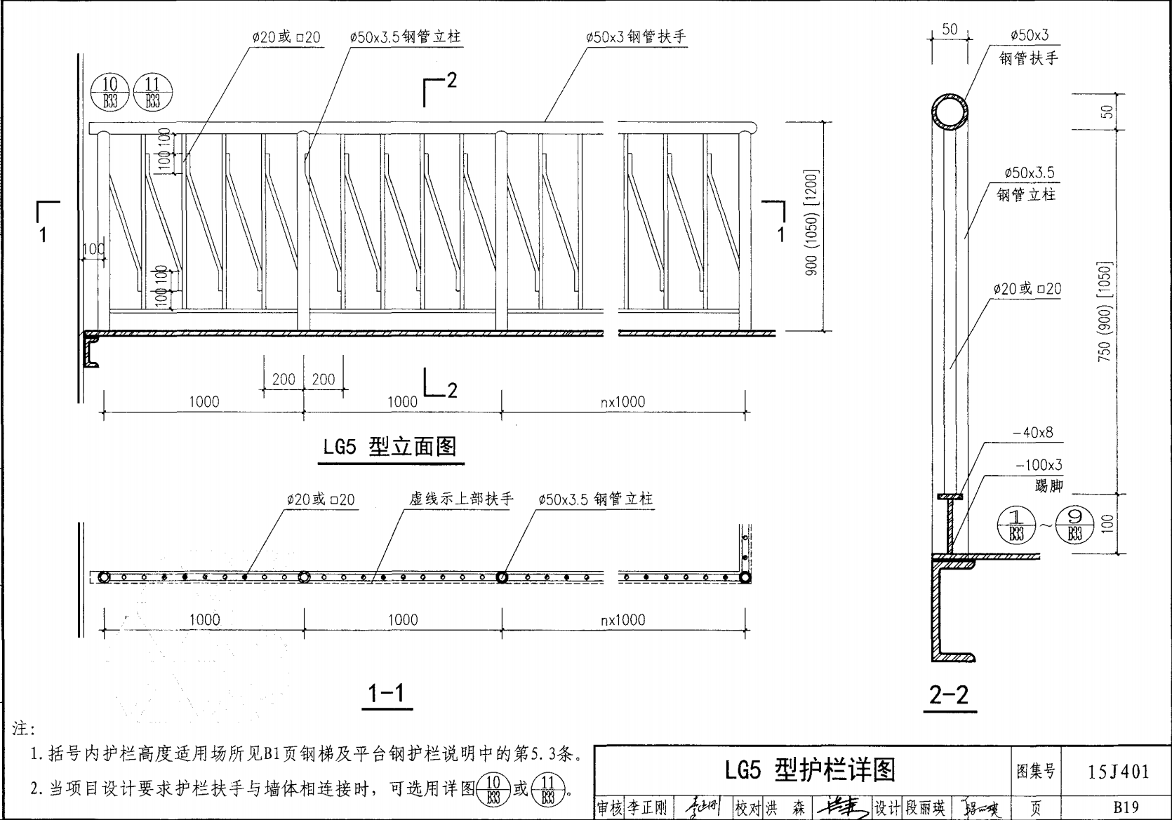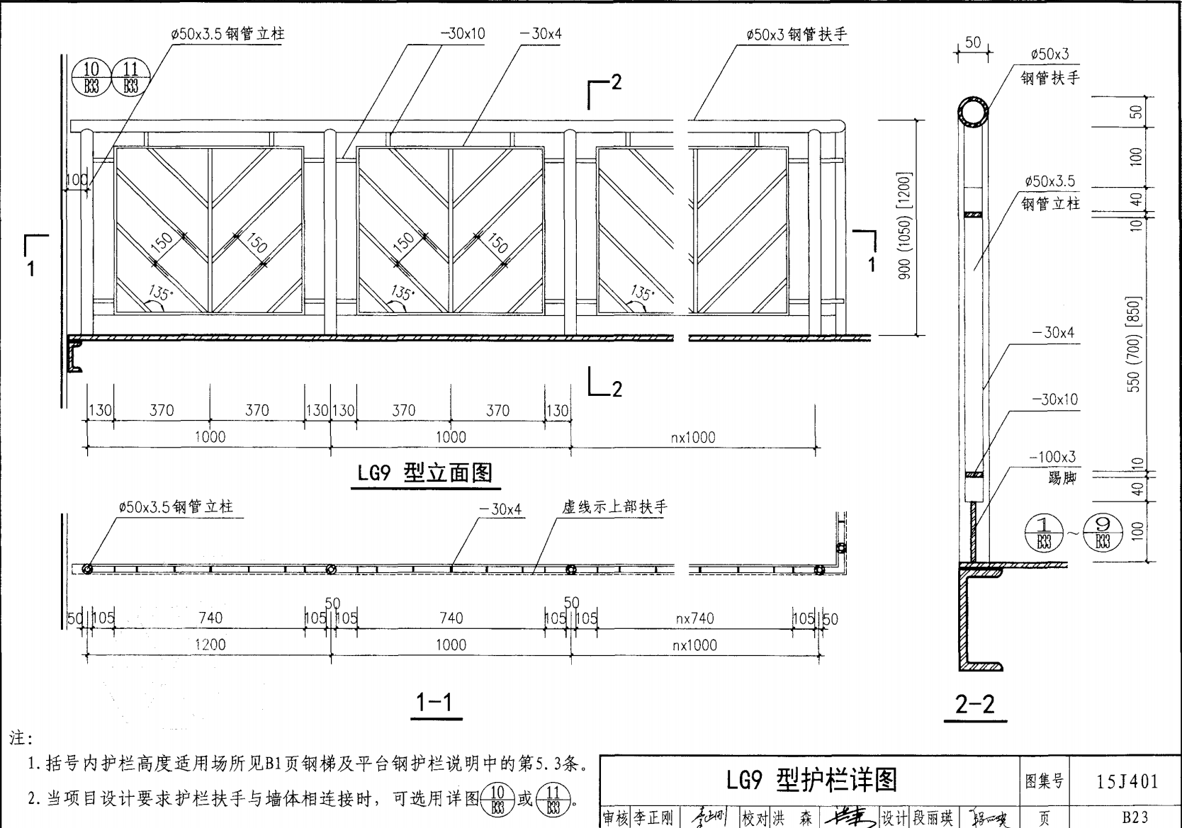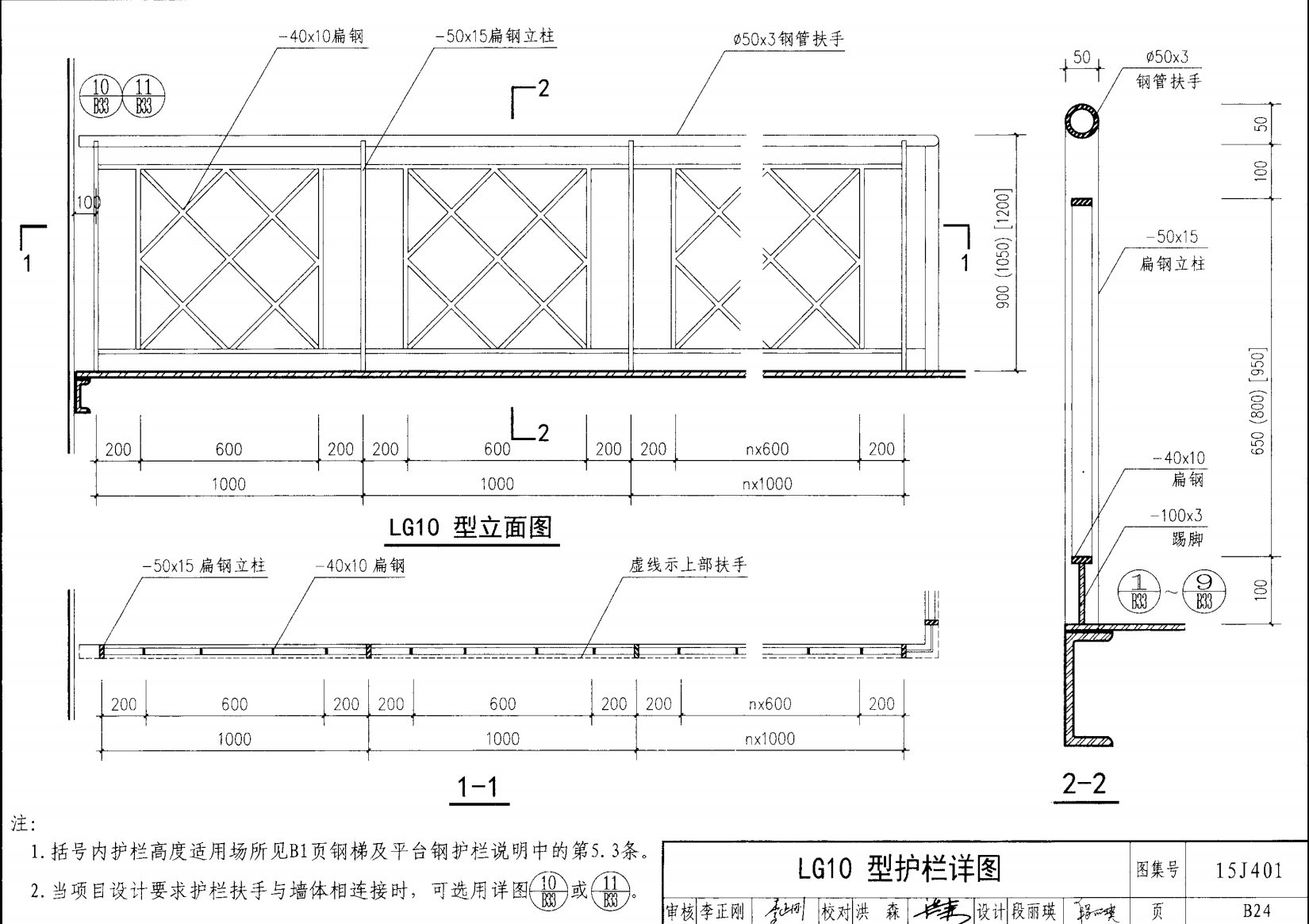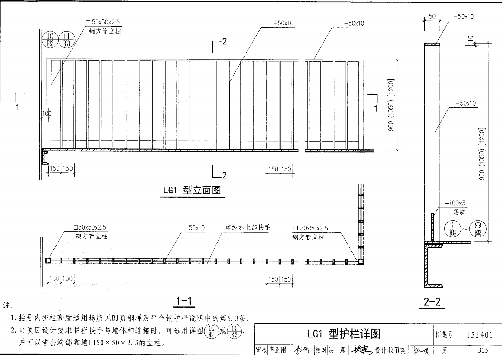 欄桿采用鋼材力學(xué)性能不低于 格證的鋼材Q235-B ,并具有碳含量合 所有欄桿均可用不銹鋼制作 欄桿的焊接要求應(yīng)符合《鋼結(jié)構(gòu)工程施工質(zhì)量驗(yàn)收規(guī)范》 GB50205-2001 證結(jié)構(gòu)設(shè)計(jì)強(qiáng)度的規(guī)定。當(dāng)焊接不便時(shí)可用螺栓連接,但應(yīng)保 鋼質(zhì)欄桿的涂裝要求可以熱鍍鋅和噴漆,噴塑 施工中如果用其他型鋼取代圖集中的立柱或減少立柱截 面尺寸,都應(yīng)按荷載規(guī)范認(rèn)真核算,以確保安全