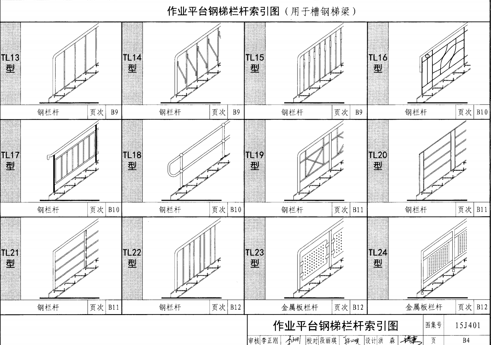- 鋼梯護(hù)欄款式:TL1-TL24型號(hào)
