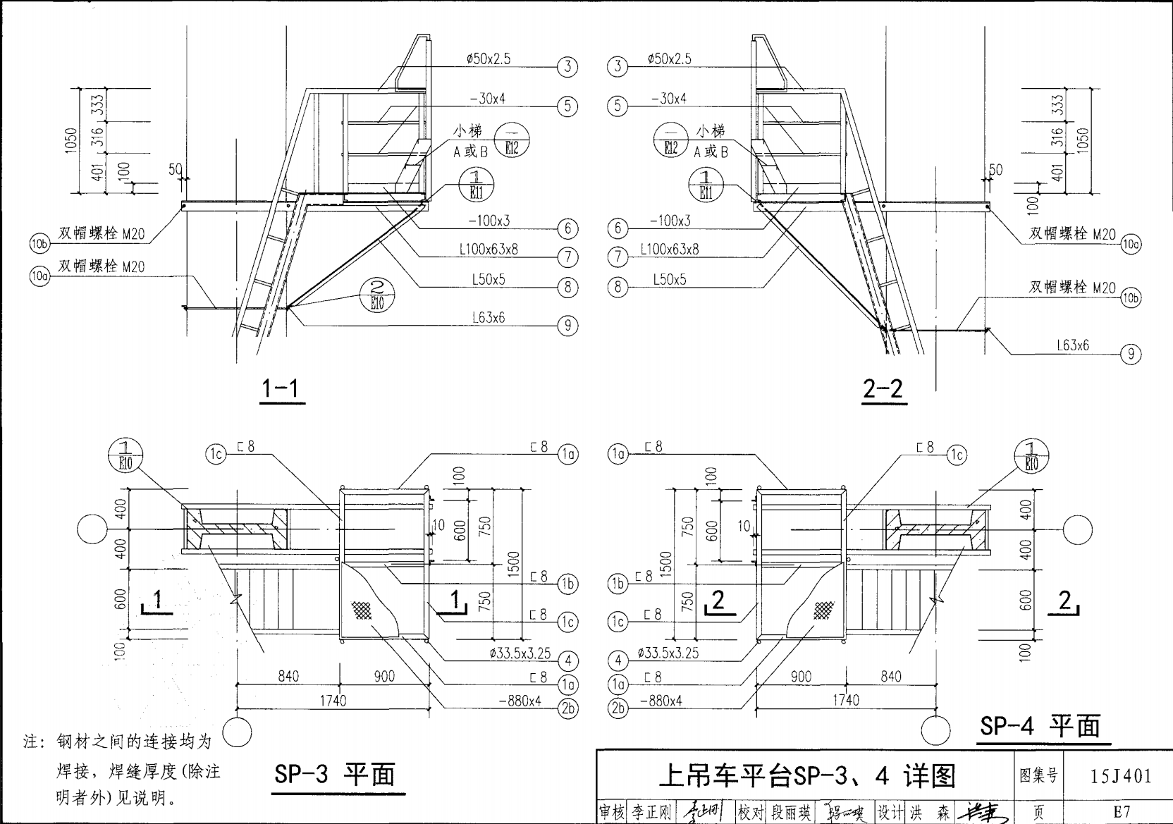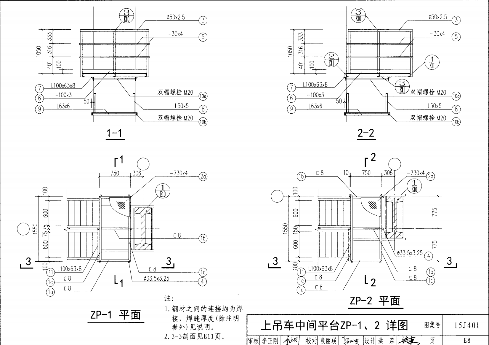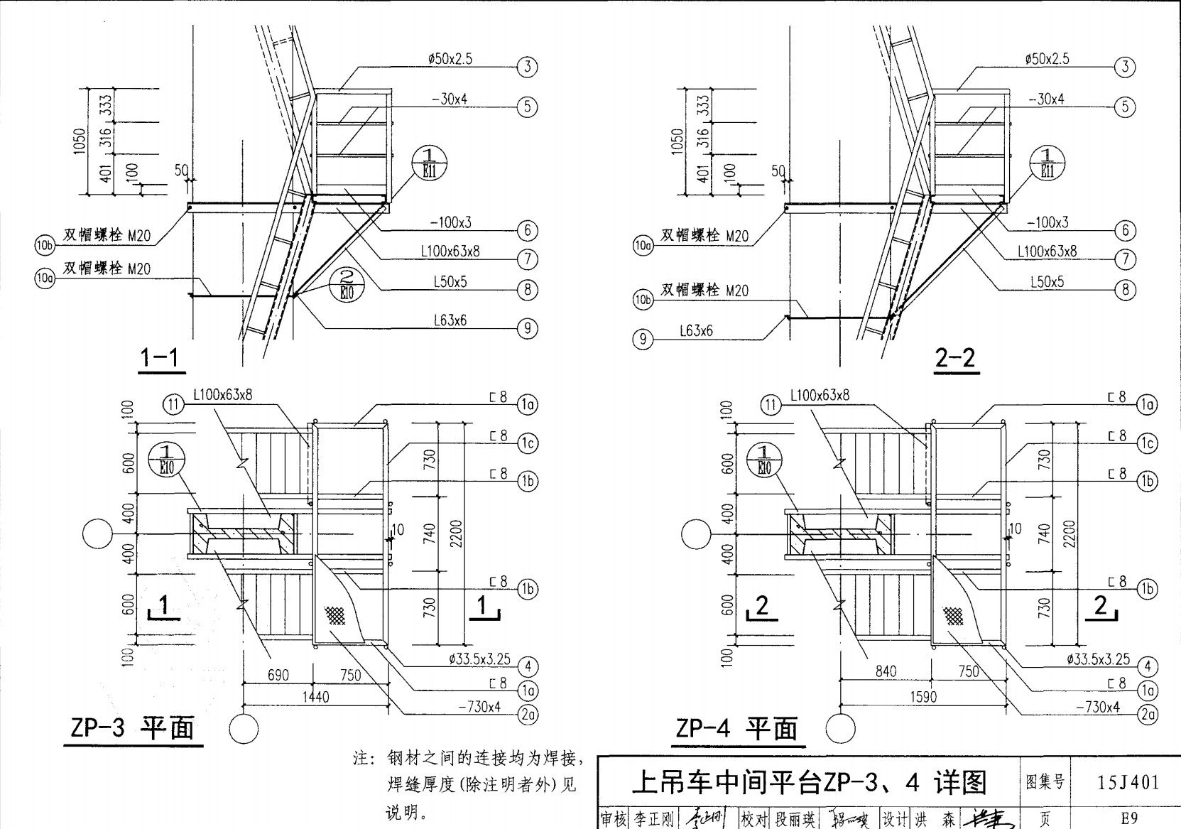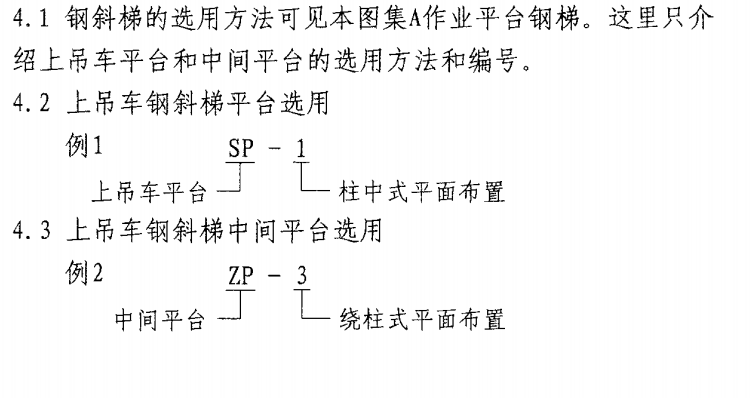 鋼斜梯的選用方法可見本圖集 紹上吊車平臺和中間平臺的選用方法和編號作業(yè)平臺鋼梯。這里只介 上吊車鋼斜梯平臺選用/ 上吊車平臺sp/1柱中式平面布置上吊車鋼斜梯中間平臺選用/ 中間平臺ZP/繞柱式平面布置3