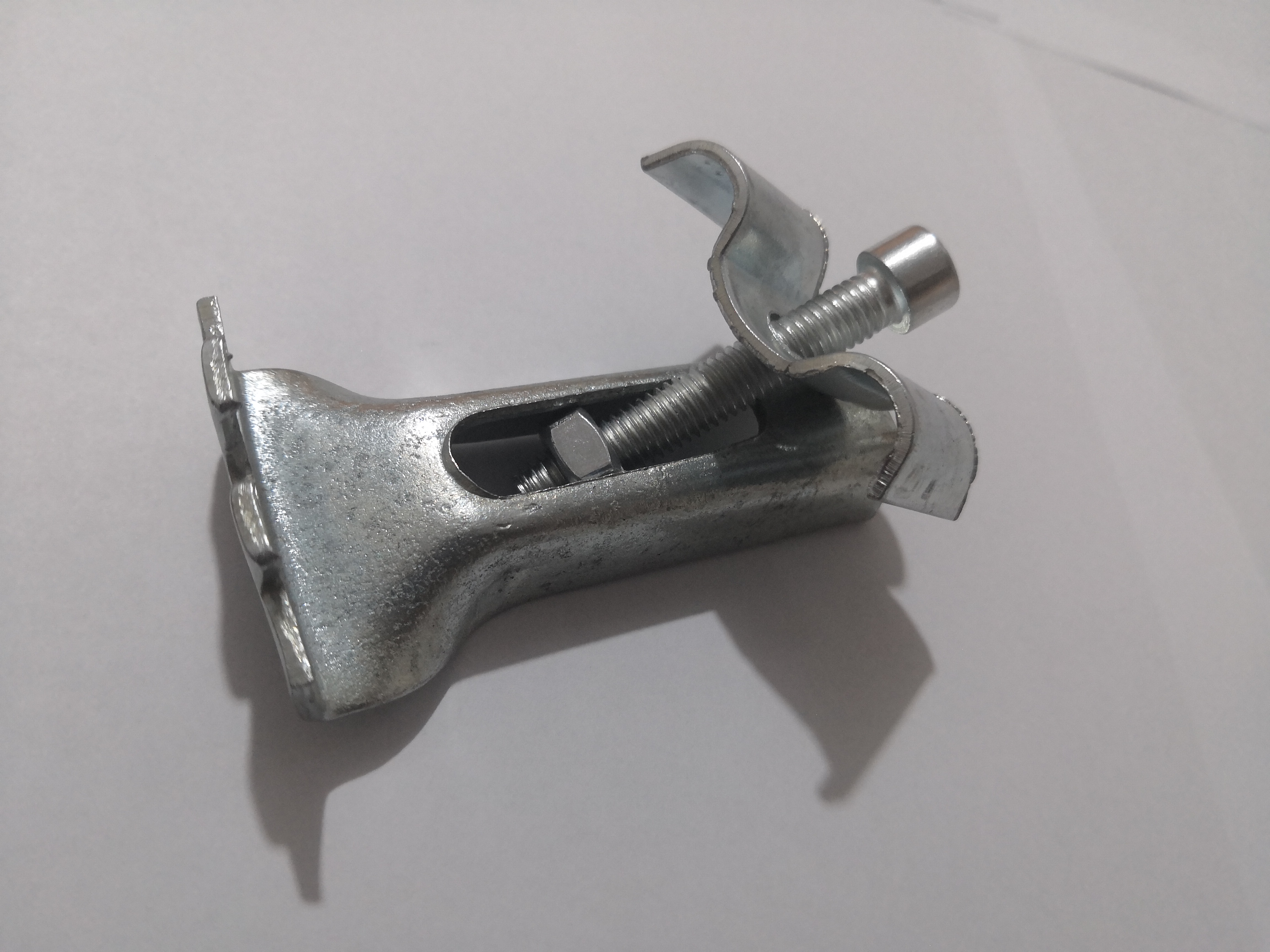 - C型安裝夾:是一種半焊接型安裝夾,安裝方式將螺栓焊接固定再用上壓片咬緊。