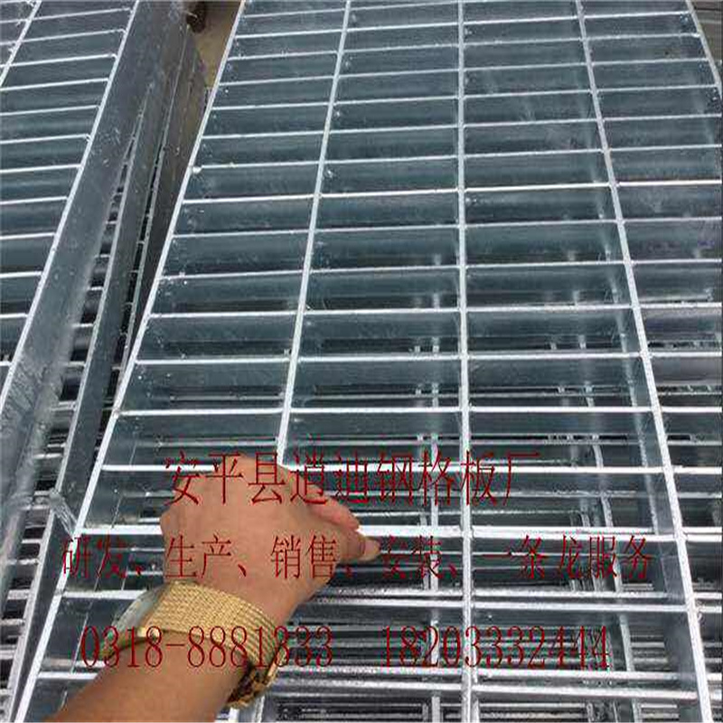 用作各種船舶的舷梯、通道、泵房、發(fā)動機室的平臺。冷鍍鋅格柵板由負載扁鋼和橫桿按一定間距經緯排列,在高壓電阻焊機上焊接而成原板,經切割、切口、開孔、包邊等工序深加工,表面冷鍍鋅處理,研制成客戶所需要的產品。