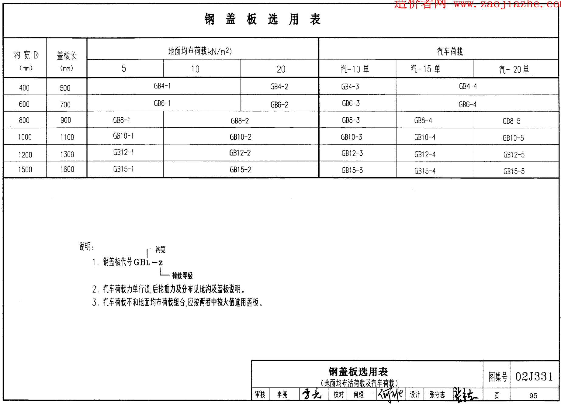 鋼蓋板規(guī)格表